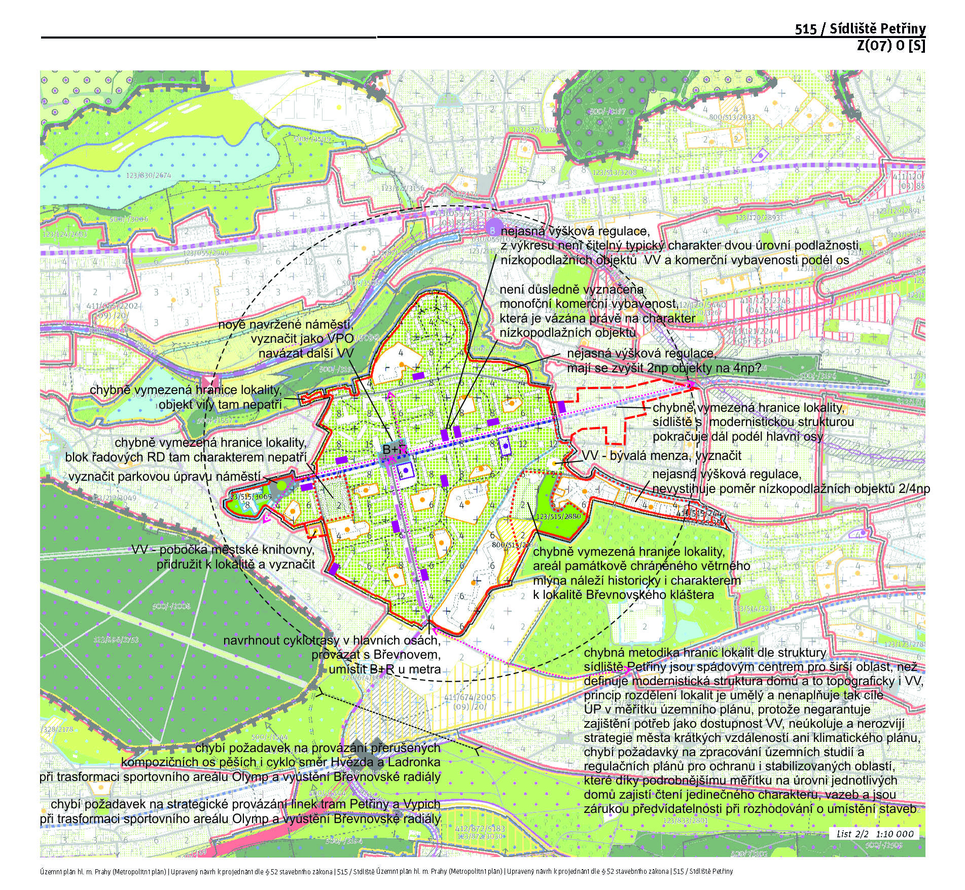 Připomínkování lokality Petřiny spolkem v návrhu Metropolitního plánu v roce 2022